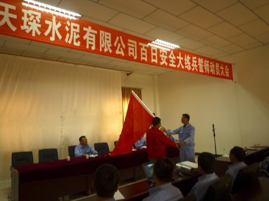 動(dòng)員大會(huì)上劉總向安全生產(chǎn)部授予百日安全大練兵儀式旗。