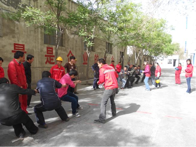 4月28日,銀川公司為迎接“五一”國(guó)際勞動(dòng)節(jié),舉行了一場(chǎng)從總經(jīng)理到一線員工的全員運(yùn)動(dòng)會(huì)。集體項(xiàng)目有:拔河、4×100米接力、籃球等。個(gè)人項(xiàng)目有:100米賽跑、跳繩、象棋、乒乓球、臺(tái)球等。公司領(lǐng)導(dǎo)和員工共同參加了比賽,大家熱情高漲,斗志昂揚(yáng),讓溫暖、和諧、歡樂(lè)洋溢在每一個(gè)賽場(chǎng)。